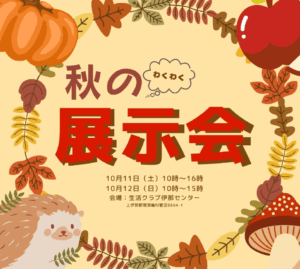 今年も恒例の秋の展示会が、10月11日(土)・12日(日)伊那センターにて開催されます。 今回もお楽しみイベントを用意して、楽しんでいただけるように企画しています! ・キッズコーナー ・試飲、喫茶コーナー ・くじ引き(は […]
